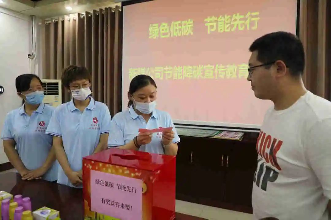 新煤公司组织志愿者深入办公场所、基层单位,通过开展有奖知识问答等形式,普及绿色办公、节能减排常识,引导广大干部职工树立绿色低碳意识,培养节能先行行为。